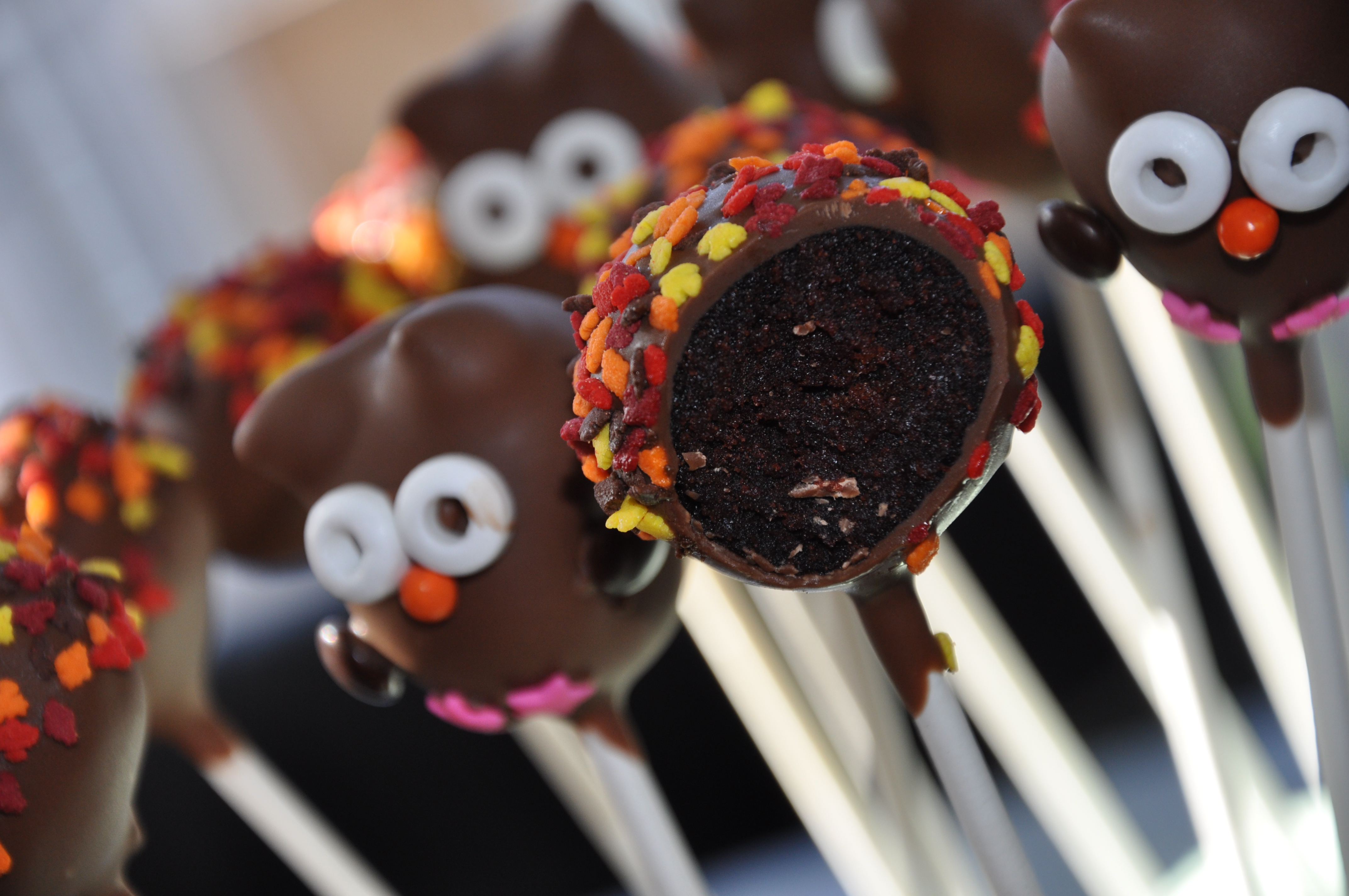 So I have to admit I have an addiction. They are called cake pops. I will find any excuse to make them and I am loving trying new and exciting themes. My kiddos are obsessed with anything chocolate. They take after their dad for that cuz I am a lover of anything with vanilla and caramel. So remember you can use any type of cake but not sure you will ever see anything other than chocolate used in my cake pops. I’m, of course, just learning to master cake pops but I borrowed an amazing book from the library written by Angie Dudley. She is the creator of www.bakerella.com She is the queen of cake pops!
