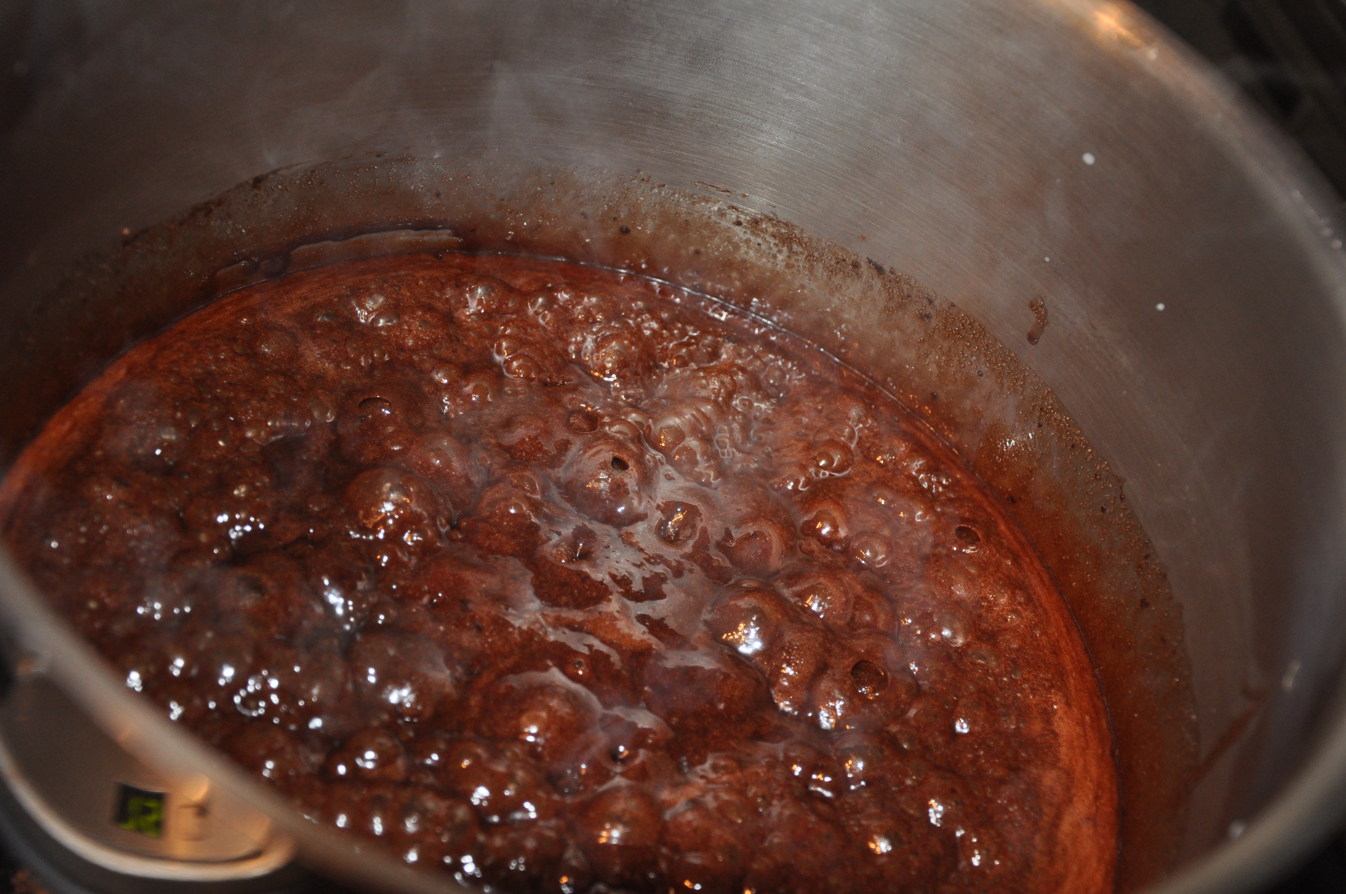 Bring sugar, milk, butter and cocoa to a boil while stirring. Stir and boil for 3 to 5 minutes.