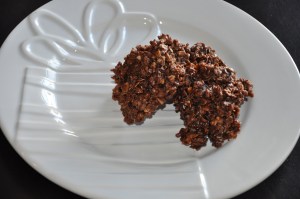 Place spoonfuls onto waxed papered cookie sheet and put in the fridge for 1 hour to set. Makes 3 dozen frogs.